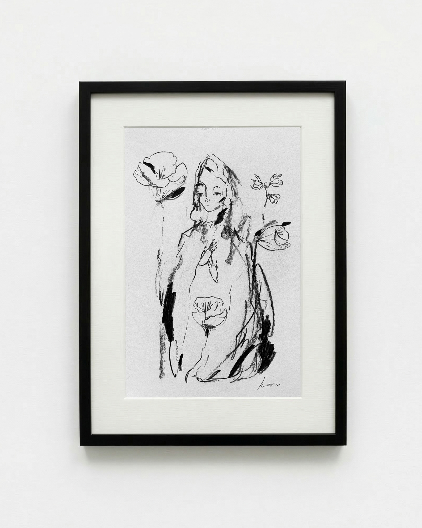 Mis flores y yo - Carboncillo sobre papel 20x30cm - $200