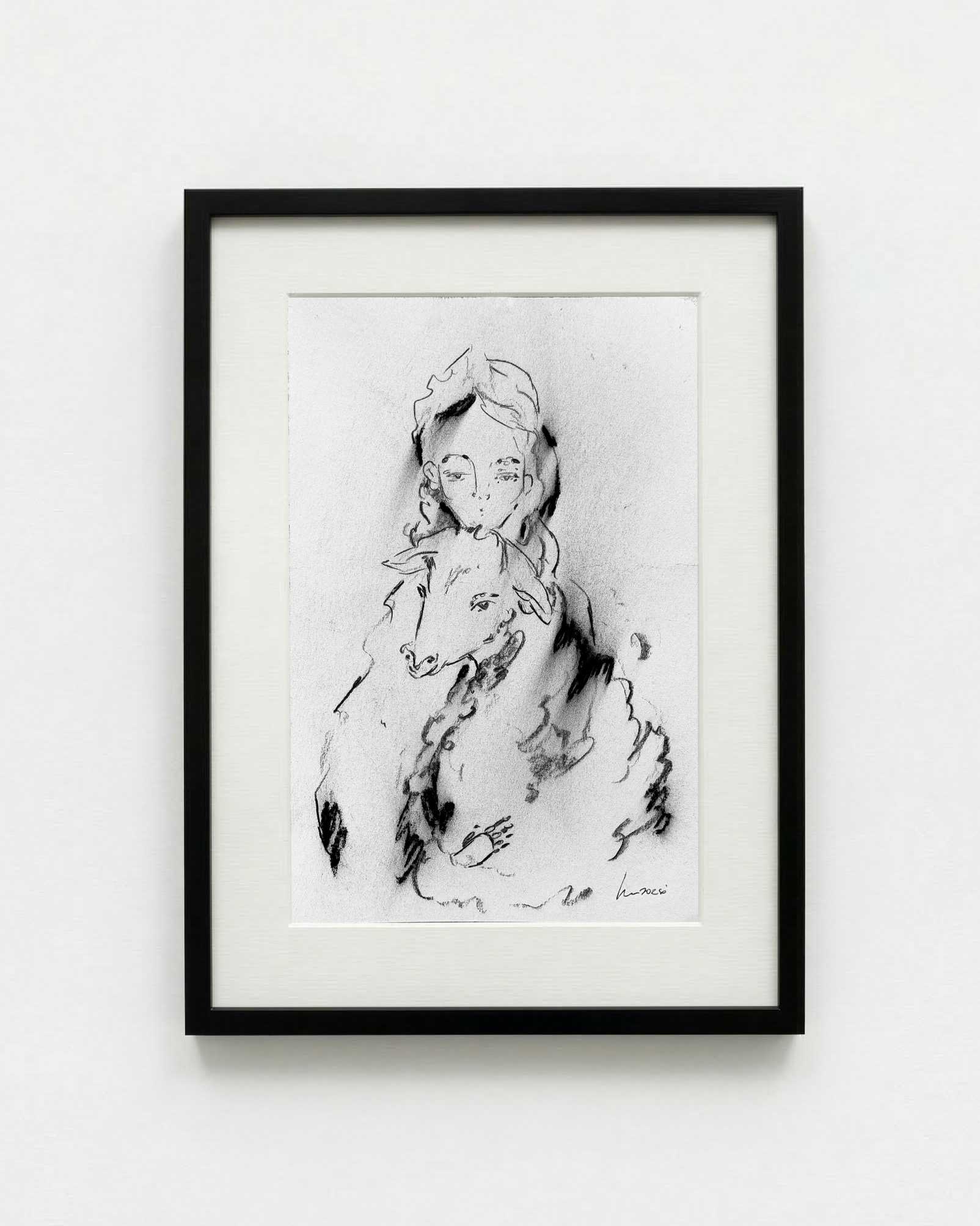 La niña y la oveja - Carboncillo sobre papel 20x30cm - $200